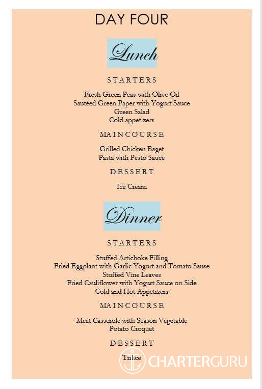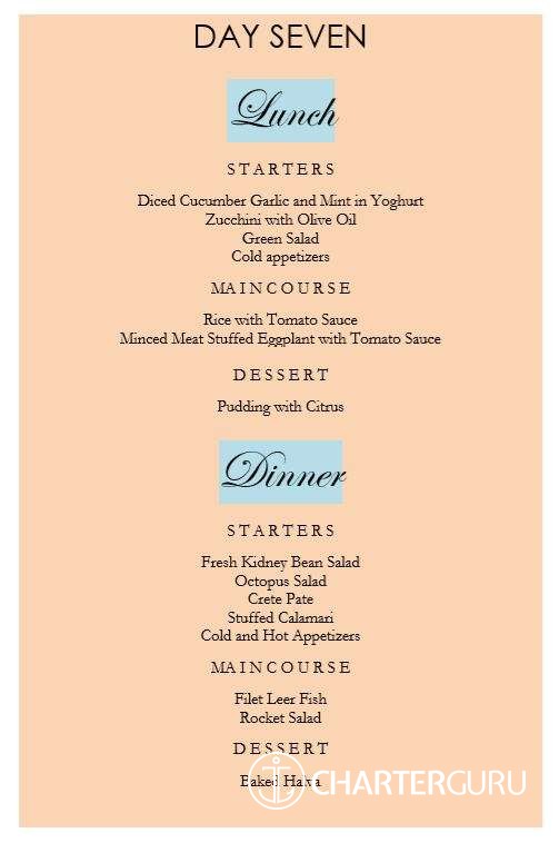 | 7 day charter | 22,000EUR to 26,500EUR | 4,400EUR to 7,950EUR | 4,400EUR to 5,300EUR | 30,800EUR to 39,750EUR | Standard charter rate, base for all calculations. | |