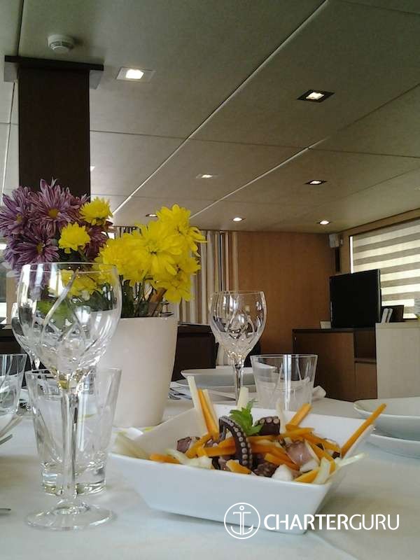 ARIA C is classified as a superyacht. The prominent section of the yacht, roomy aft deck, elegantly connects to the meticulously composed main saloon. The main saloon is a well-design space that is well-equipped to shield from the elements in comfort and enjoyment and enables a number of media entertainment options. 5 elegant cabins are thoughtfully spread out with vison for maximum room, access, comfort and privacy.