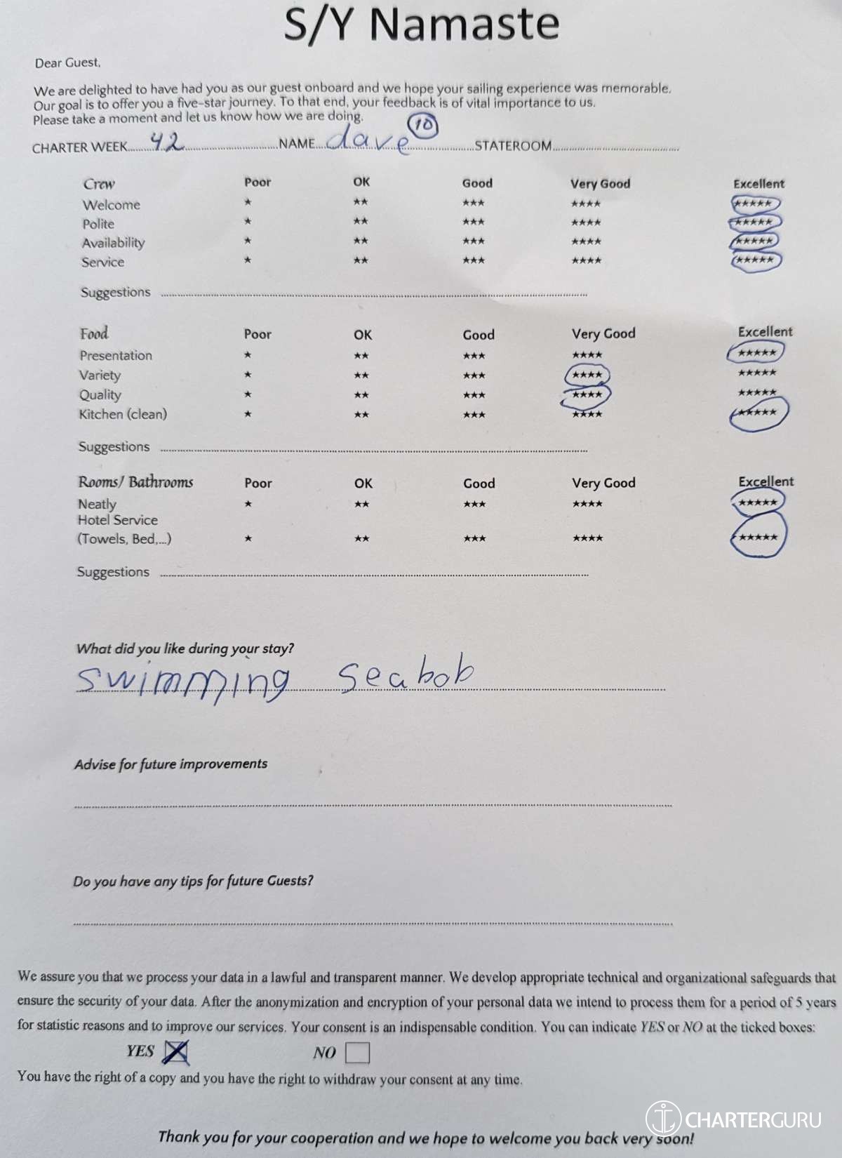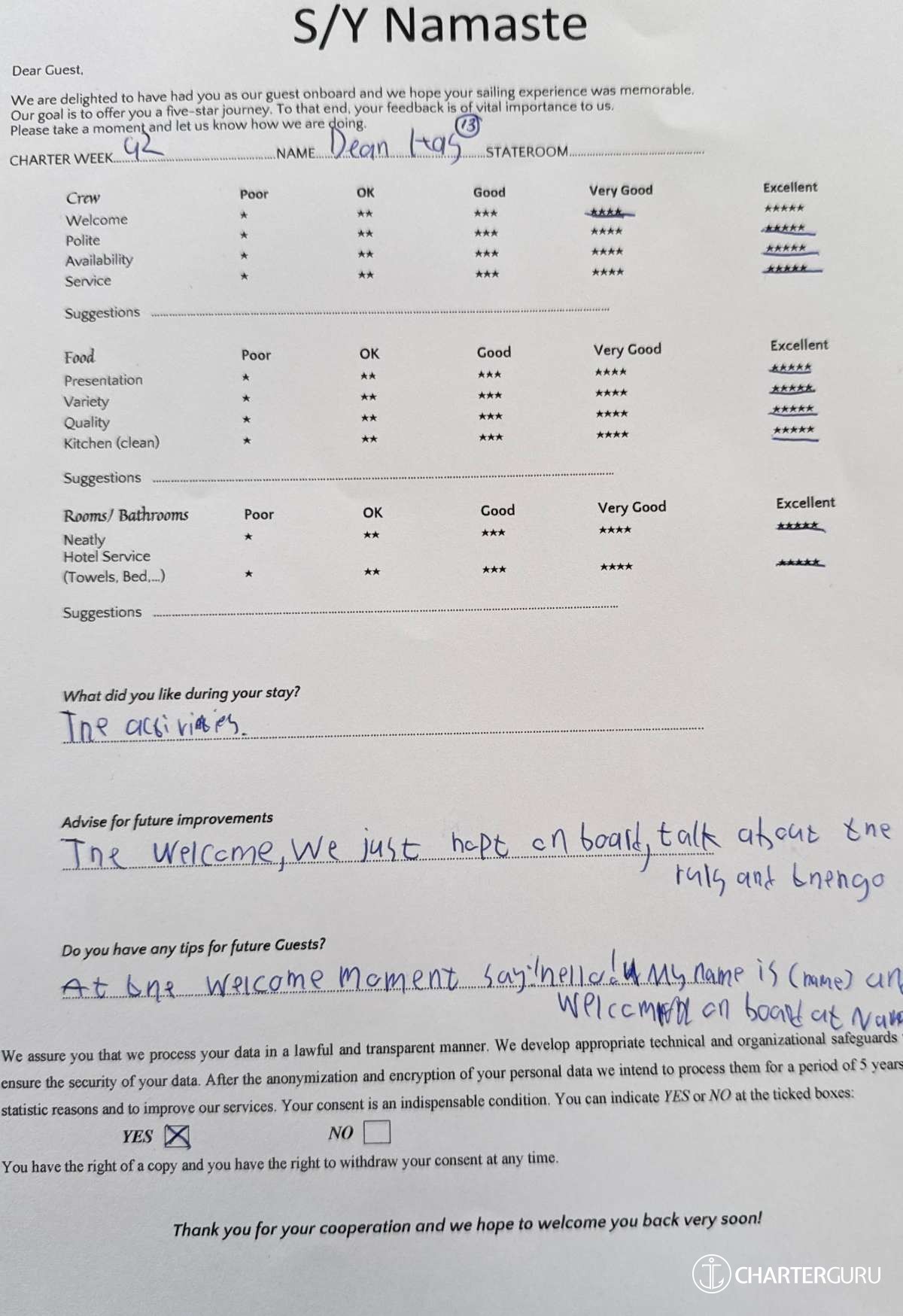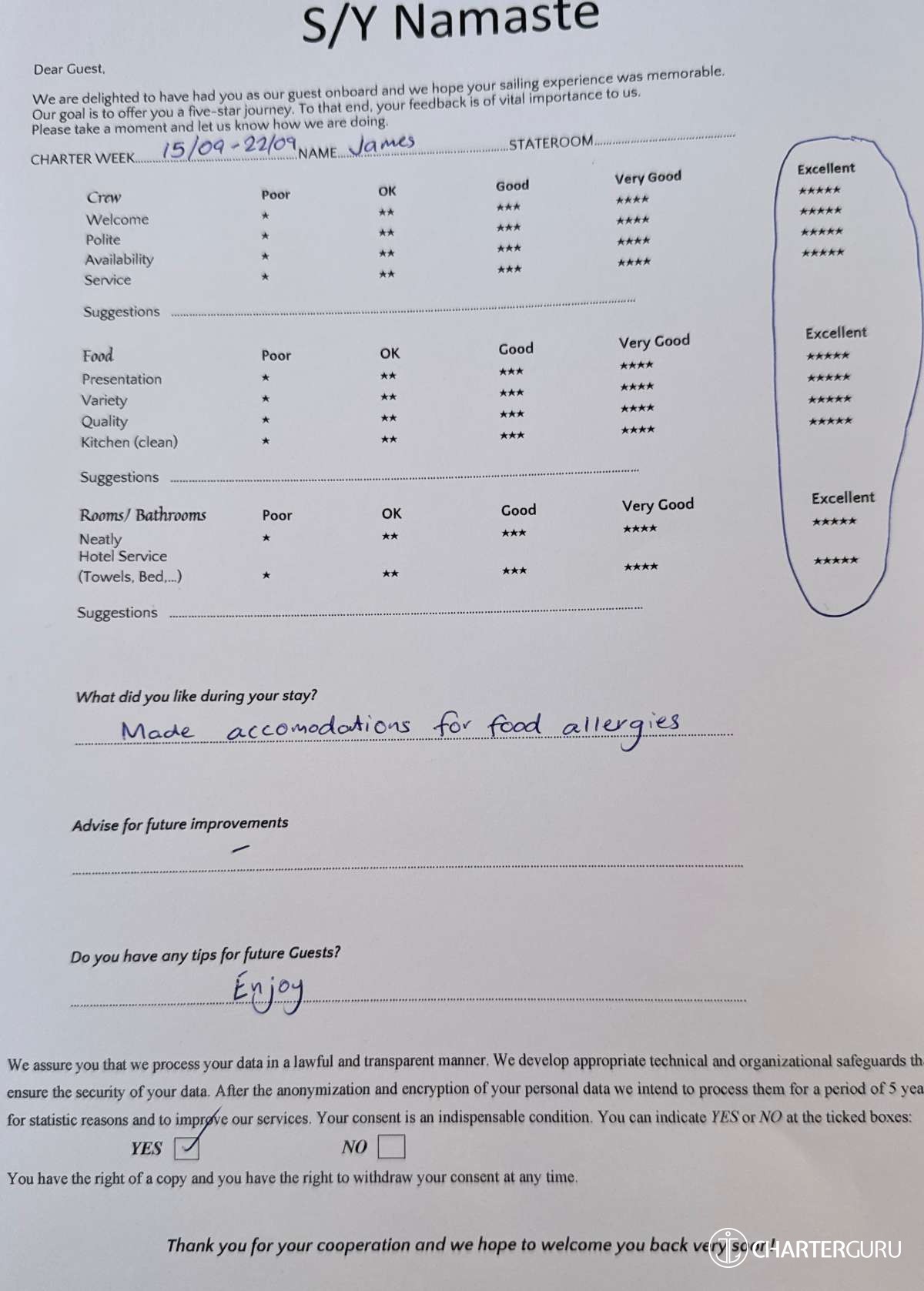 All additional/variable expenses such as Gas and Food are deducted from an Advance Provisioning Allowance (APA) - an additional deposit that is added on top of the charter price.