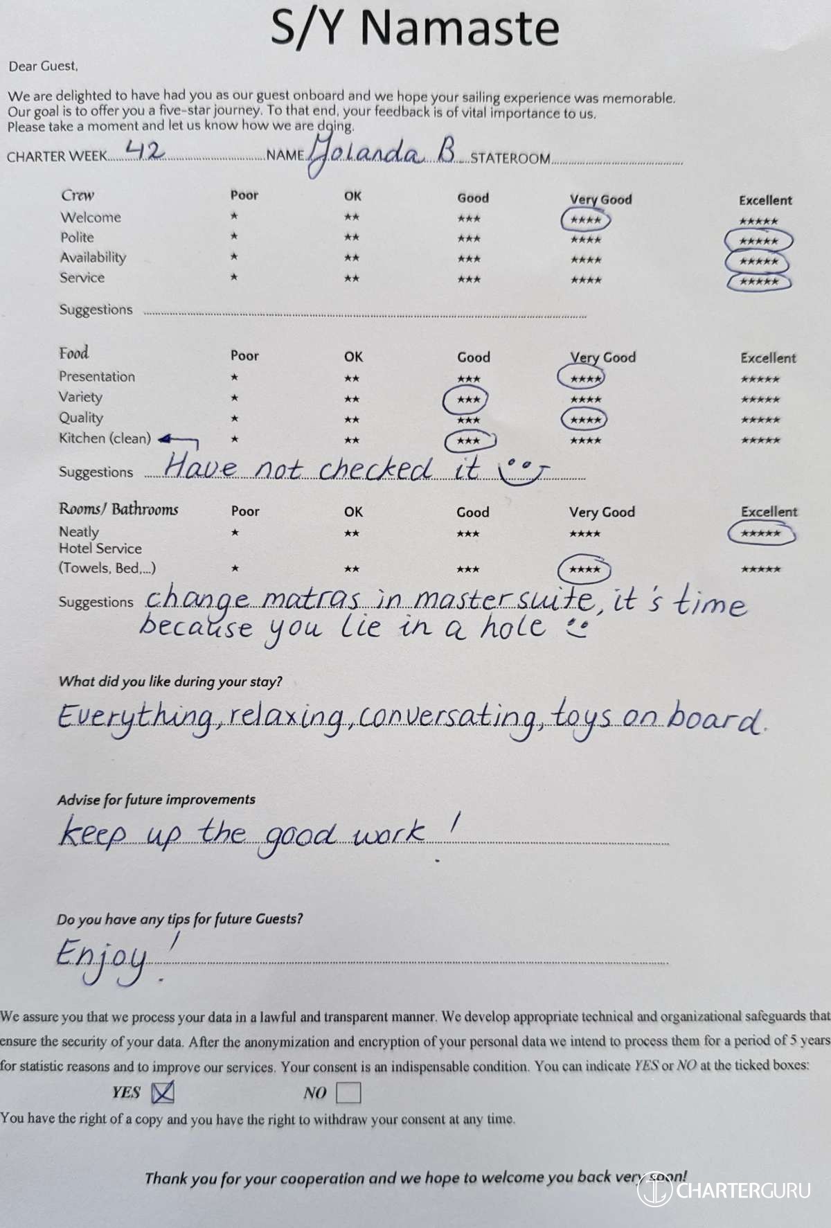 NAMASTE (SAMANA) Yacht Description