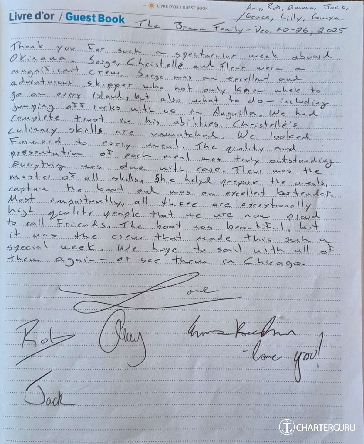 In any case, the crew did an excellent job, demonstrating great availability, especially considering the presence of two very young children on board, with special needs (bottle feeding, special lunches and dinners for the two-year-old, etc.).