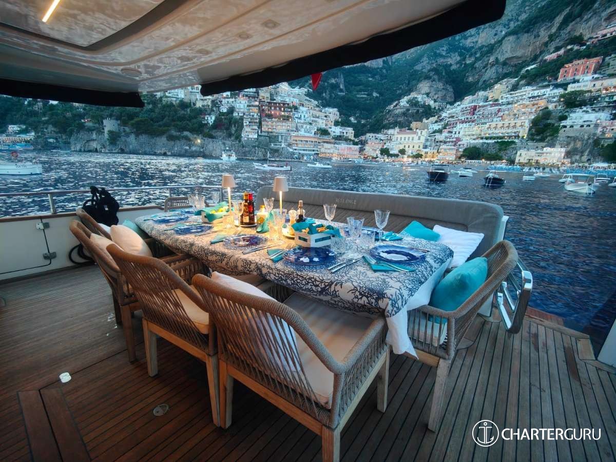 Guests will find several lounging areas aboard, including the bright, welcoming salon with a separate dining zone for up to 8 guests where relaxing with family and friends.