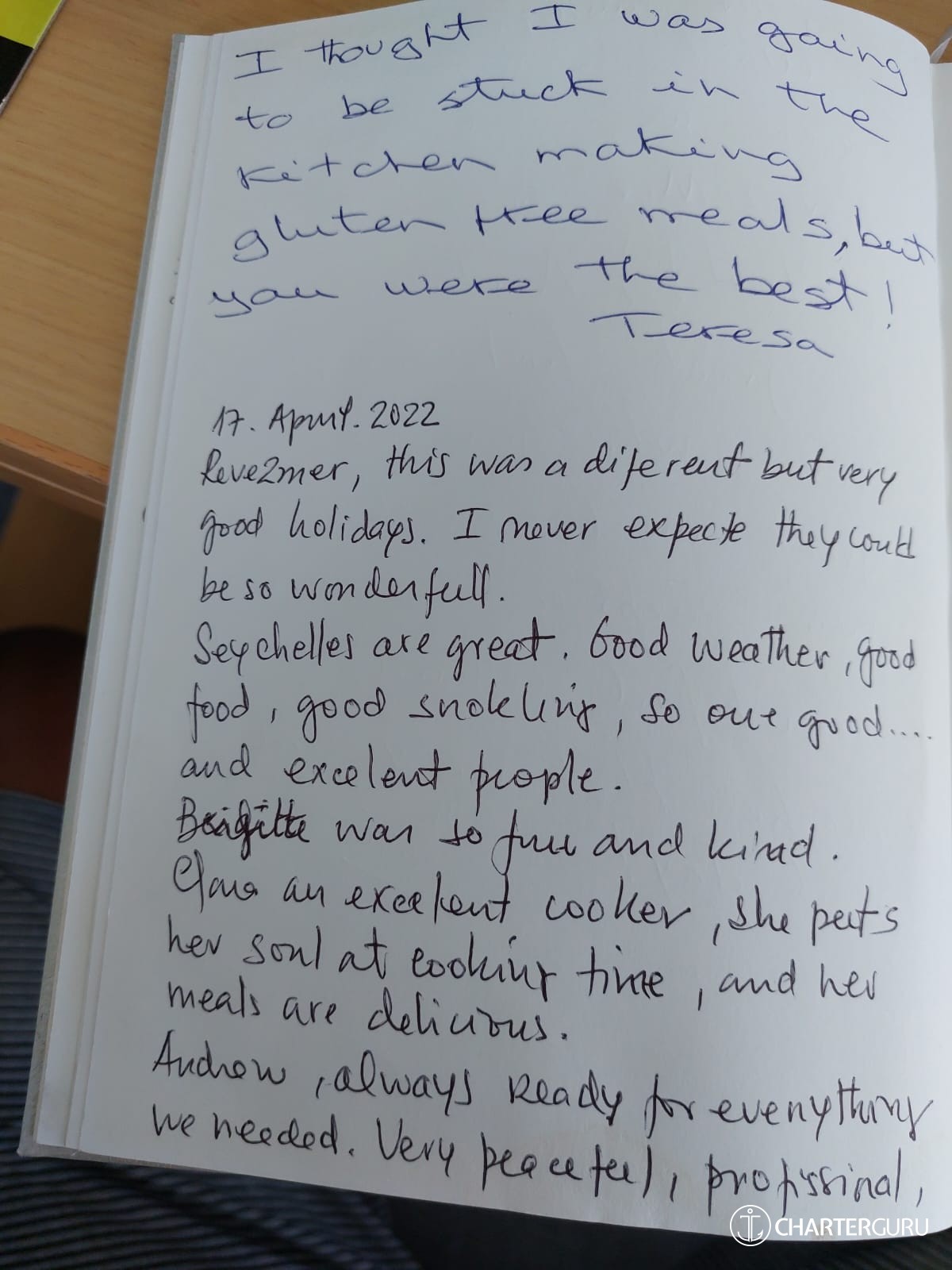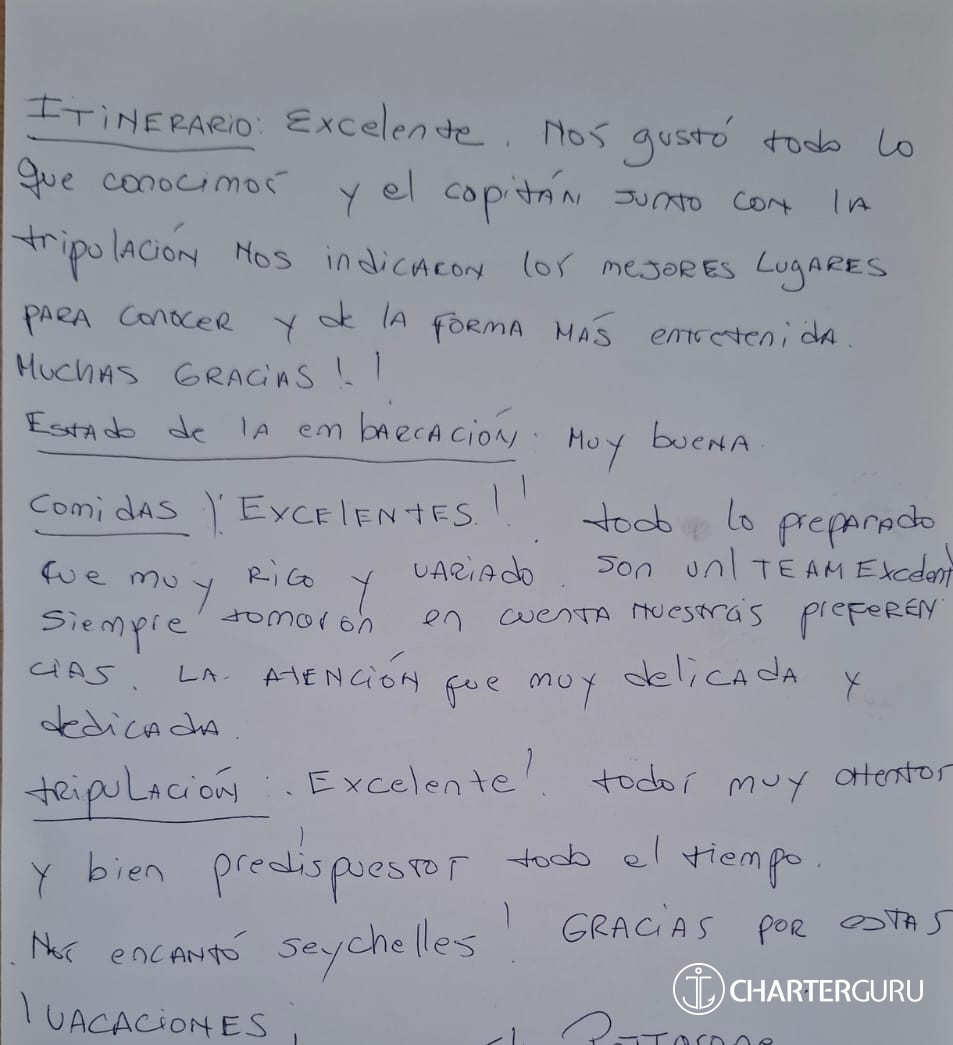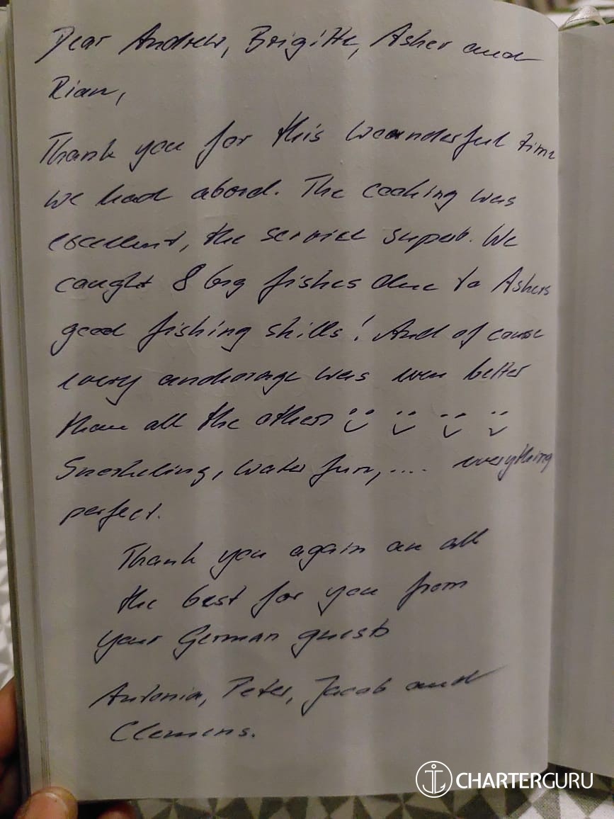 Thank you for the great adventure. Wonderful cook on board, better than the many restaurants of Seychelles.