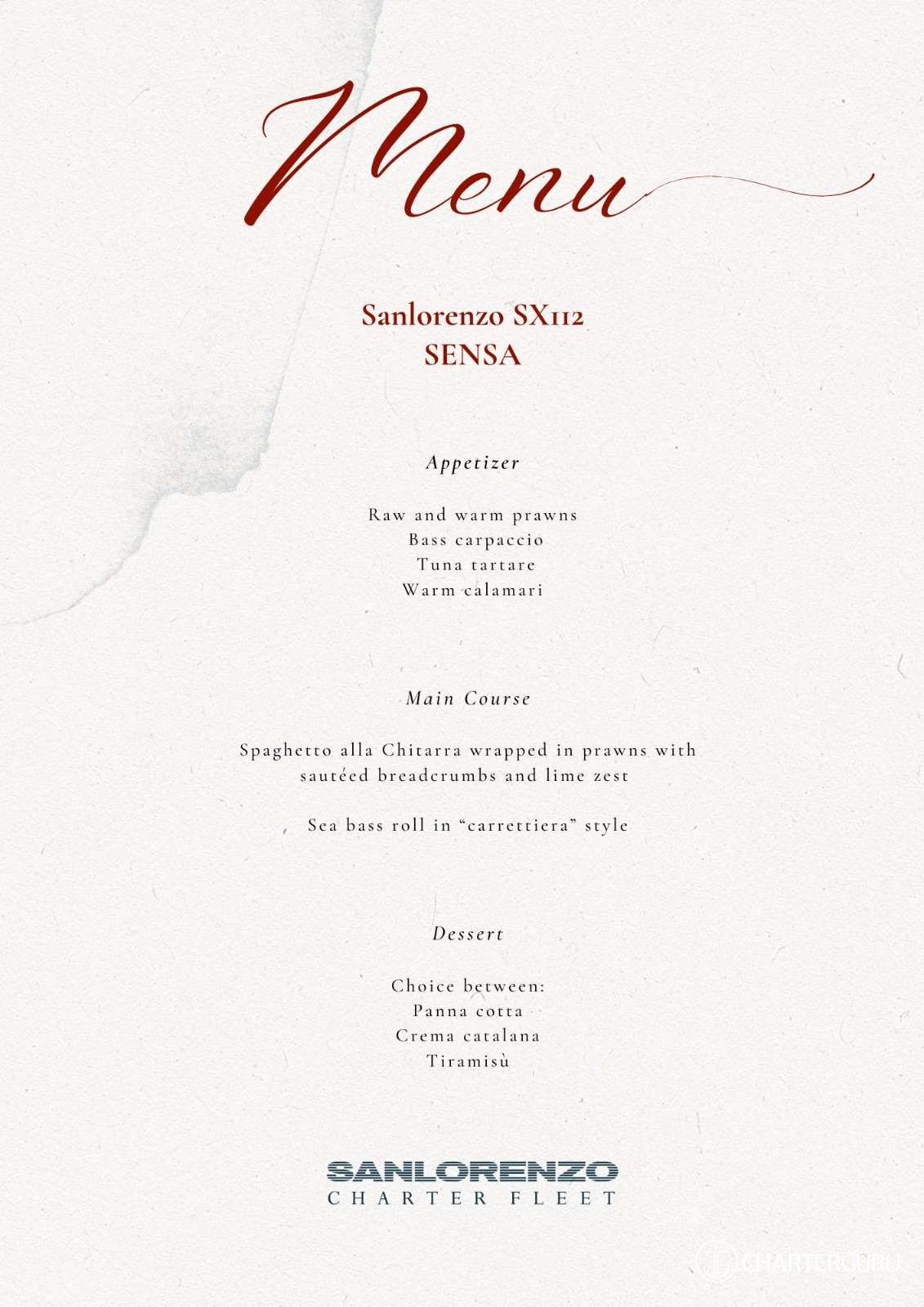 For a motor yacht like Sensa, the expected APA is 25% to 40% of the charter price (€31,250 - €50,000), making the charter cost €156,250 to €175,000. Exact amount will be confirmed after inquiry.