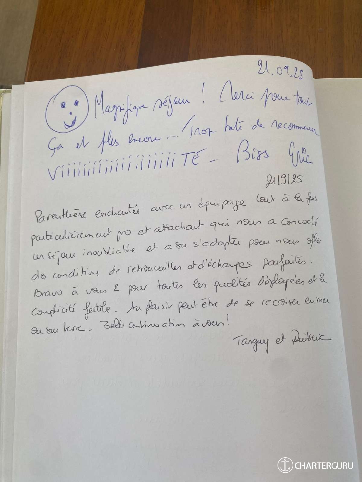 Sérénité can accomodate up to 8 guests in 4 double ensuite cabins : 1 with queen size bed & 3 doubles cabins.All cabins have air conditioning, plugs and toiletry.