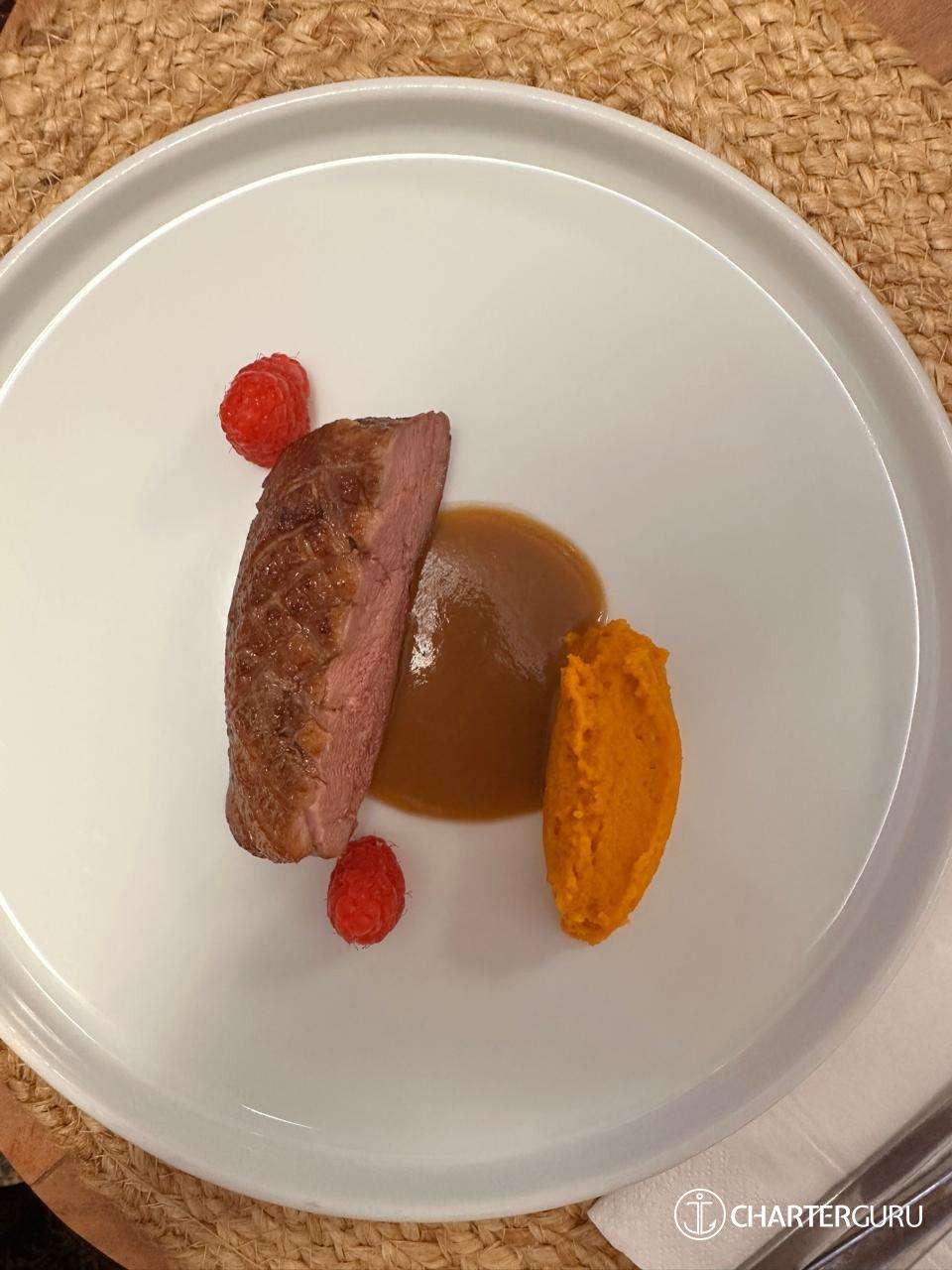 His favorite food: Duck breast with purée and red sauce