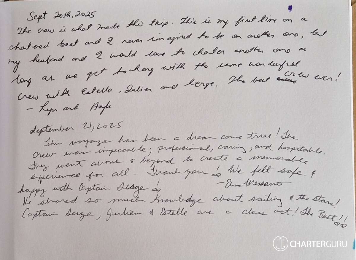 It is with great pleasure that my crew and I will accompany you throughout your cruise on "The Blue Dream".